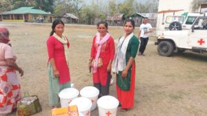 The beneficiaries were distributed various inputs by various departments present. Staring with Red Cross Society of Kalimpong three kitchen sets were given to three needy individuals of Mongpong Forest Village. The basic hygiene kit & Buckets were distributed among 62 individuals both male and female. In addition with distribution, cloths were distributed among children and women of Forest Village. The Kalimpong Animal Shelter conducted Animal Birth Control camps and in total ten dogs were operated.