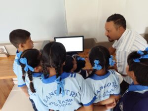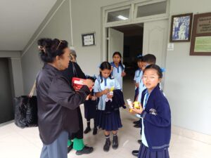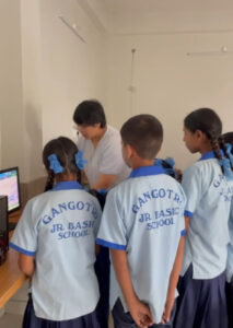 Eight children of Gangotri Jr Basic School visited our Learning Commons on 3rd July for an educational tour. They were accompanied by two teachers, Ms Ruth Rai and Sir Ashwin Gurung. The children learnt the names of the parts of a computer and typed numbers and alphabets with the help of LCC Blessica. They also watched infotainment videos. It was a wonderful learning experience for these little children who come from very underprivileged backgrounds. They were provided with juice and snacks