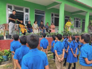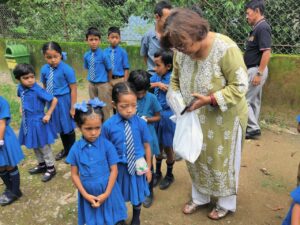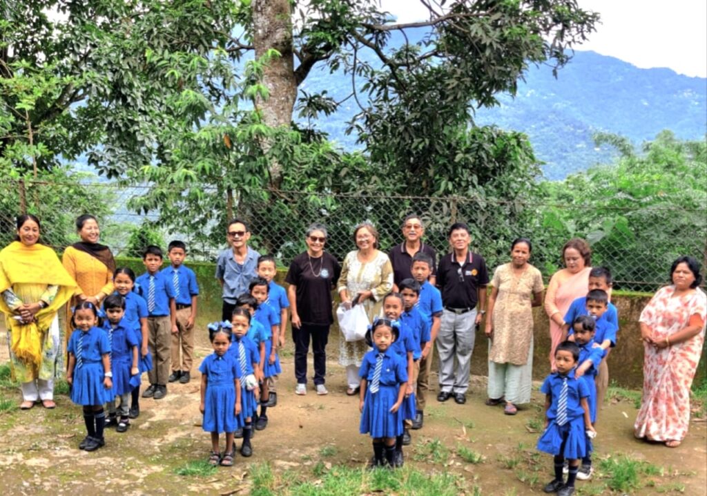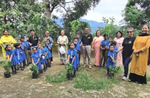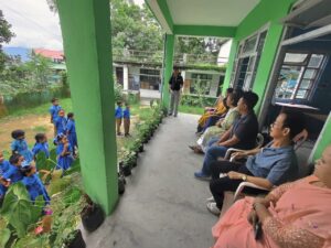 Report on Environment Mission Programme : A programme was held on 24th Jul ’23 at Tashiding Jr Basic School, 5th Mile, Kalimpong( school dedicated as Happy School, by RC, Kalimpong in 2022). The Committee Chair, Rtn AK Zimba, gave a talk to the students, Teachers and Staff on the importance of the environment to all living beings and the need to preserve it. This was followed by distribution of fruit and flowering trees to be planted within the school compound.