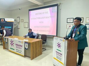 The DG gave a pep talk to these young students. He was impressed by their zeal and attitudes. He stressed on the fact that they were laying the foundation stone for being future members of Rotary and also the fact that their leadership skills were being developed. The students gave their reasons for why they felt happy being Interactors and Rotaractors. Each of the Faculty Counsellors too spoke a few words about their observations and how they went about doing things in their schools. It’s because of their guidance that the Interactors are who they are. The New Gen Director, Rtn Sheila Rai Fudong summed up matters before the meeting was adjourned. PE Rtn Mahendra Agrawal kindly volunteered as the photographer and the SAA while PP Rtn Sanjay Bajla was present to monitor the sound equipment.